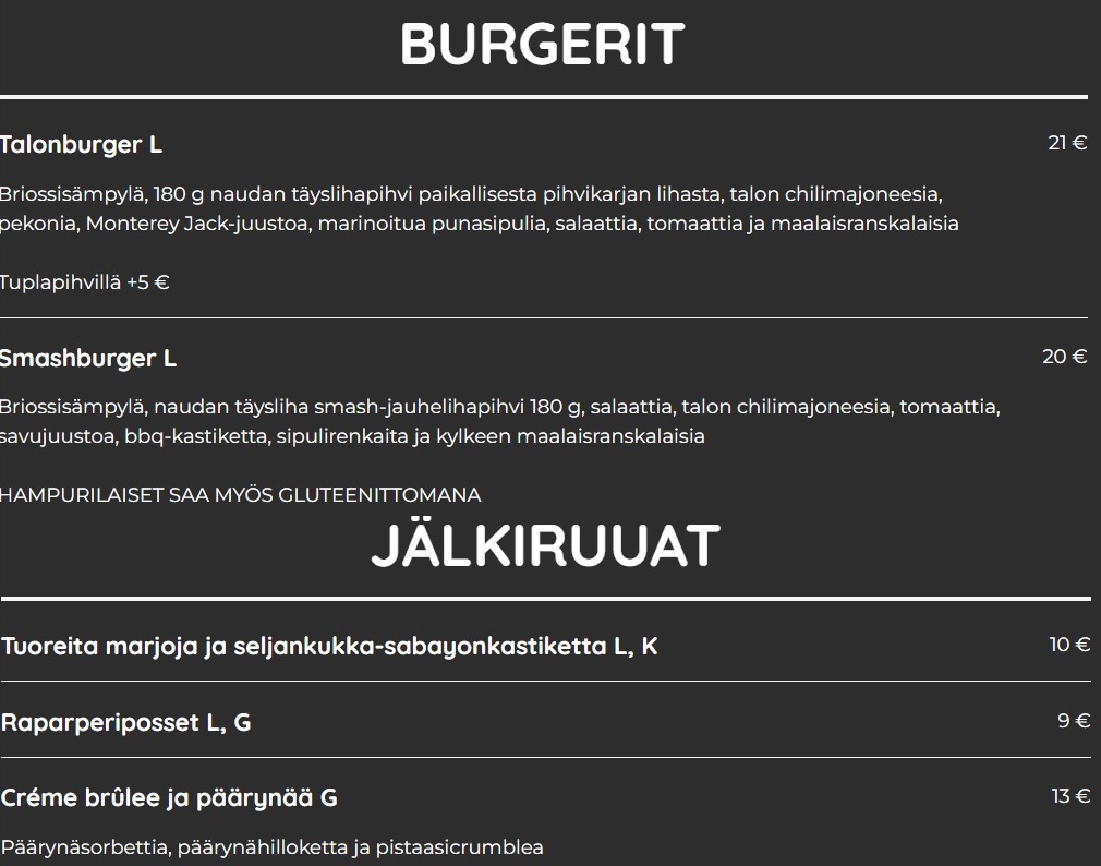 Hintaluokka per henkilö: 9 €-24 €.
