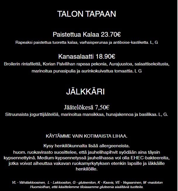 Hintaluokka per henkilö: 10 €-24 €.