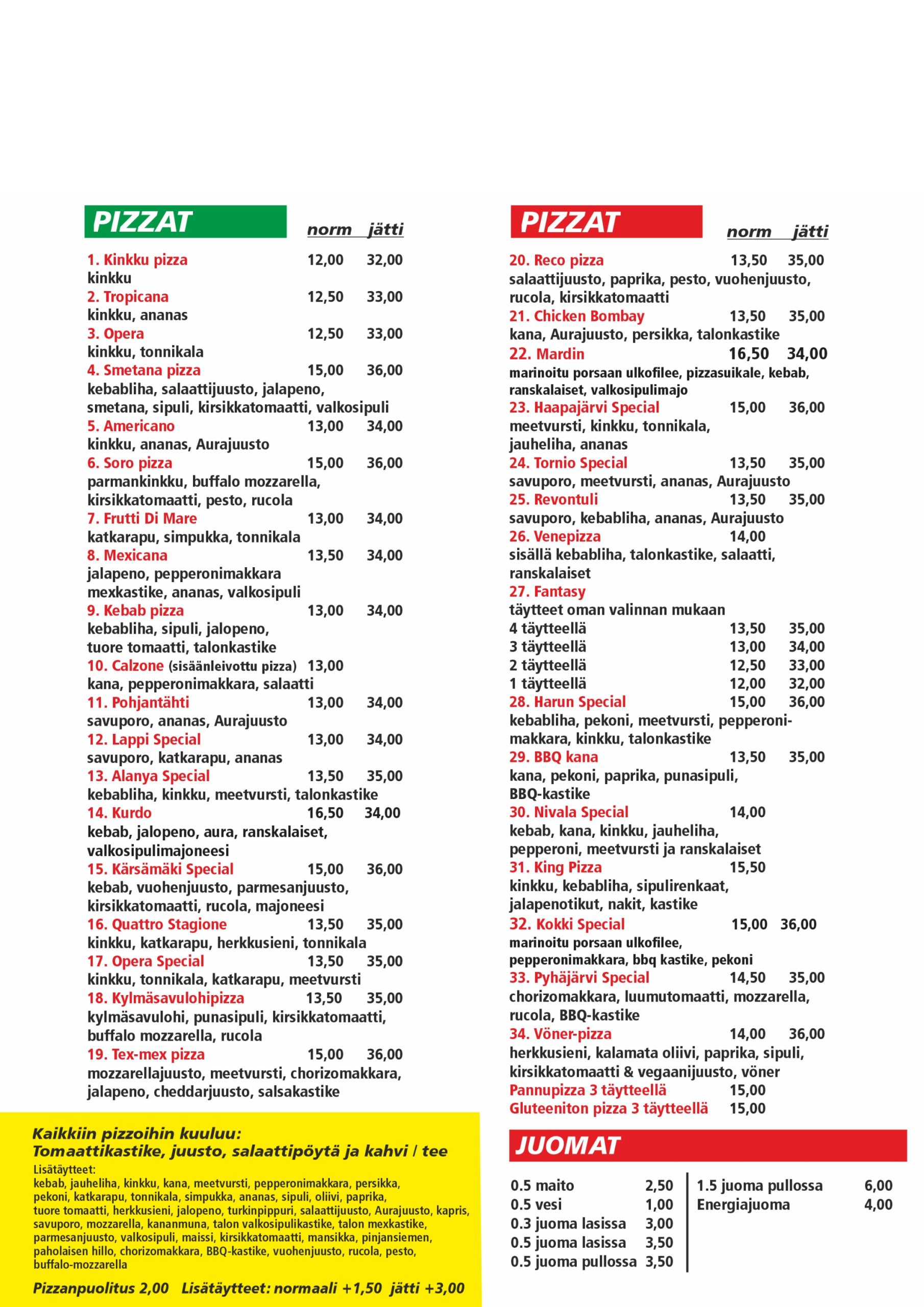 Tervetuloa osoitteeseen restondo.com/fi, online-ravintolaoppaasi. Ravintolan nimi on Ravintola Harun, osoite on Kalliontie 36, Nivala, Suomi